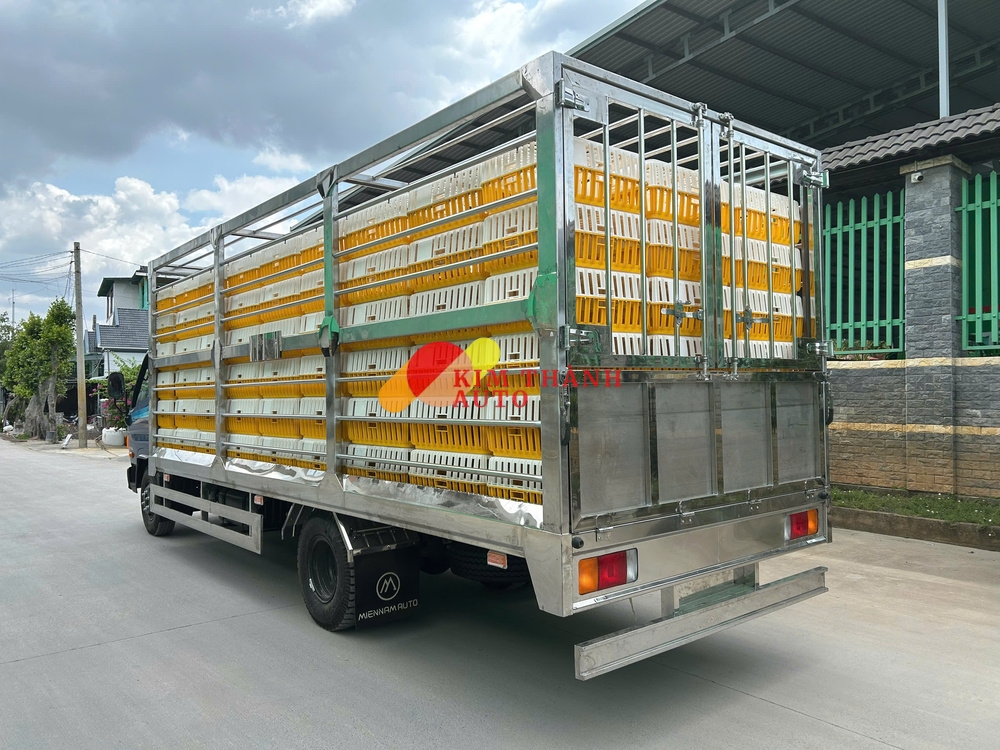 Thùng chở gia cầm 6m3 được thiết kế thông thoáng, chắc chắn, phù hợp vận chuyển gà, vịt, chim… trong thời gian dài. Vật liệu thùng bền, chống gỉ và dễ vệ sinh sau mỗi chuyến hàng. Hệ thống thông gió và cửa mở linh hoạt giúp quá trình bốc xếp nhanh chóng, hạn chế ảnh hưởng đến vật nuôi. Đây là điểm cộng lớn giúp W11XL phù hợp với các đơn vị vận chuyển nông nghiệp chuyên nghiệp.